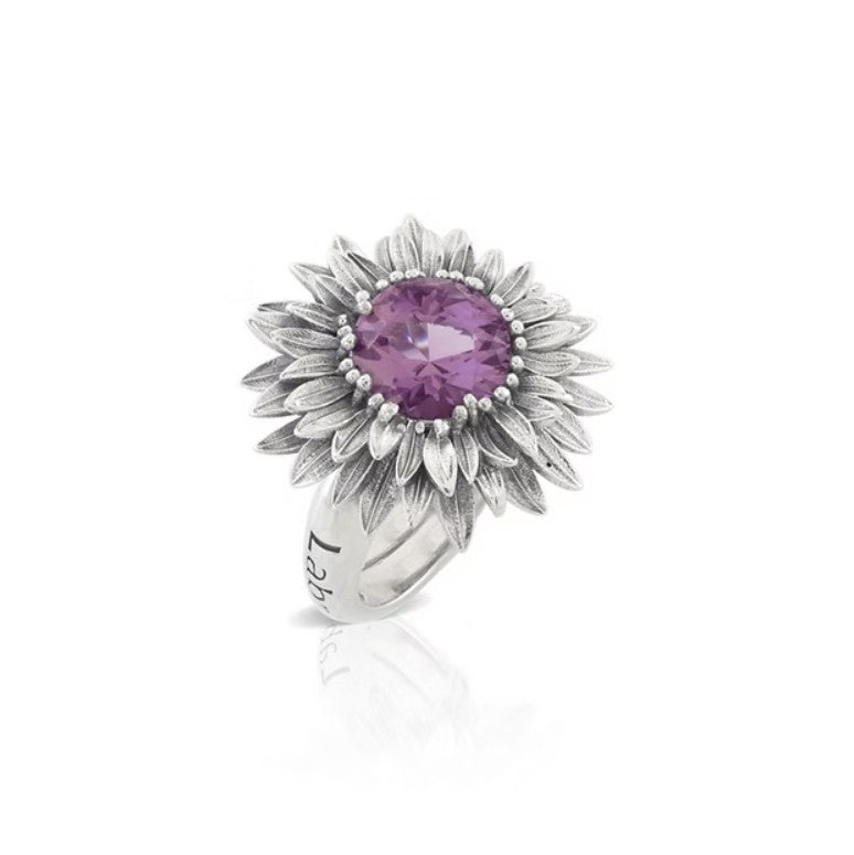 Anello da donna in argento e quarzo 925 Girasole Labriò. Misura regolabile.