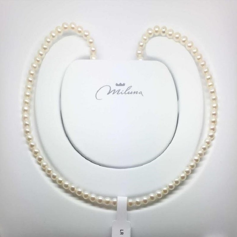 Necklace in white oriental cultured pearls diam. 4.5-5 with 18Kt white gold lobster clasp. Measures 42cm.