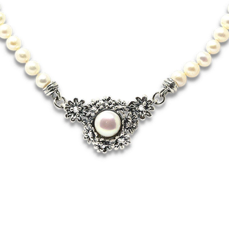 Collana in Argento 925/000 e zirconi e perle naturali. Realizzato a mano in Italia ed è corredato di Garanzia e Certificato di Autenticità. Dimensioni Piastra lunghezza 3 cm x altezza 2 cm. Pietre Zirconi. Numero Pietre 9. Perla Centrale:Perla Naturale 9 mm. Collana di perle naturali 45 cm. Perle naturali diametro 5 1/2 – 6 mm.