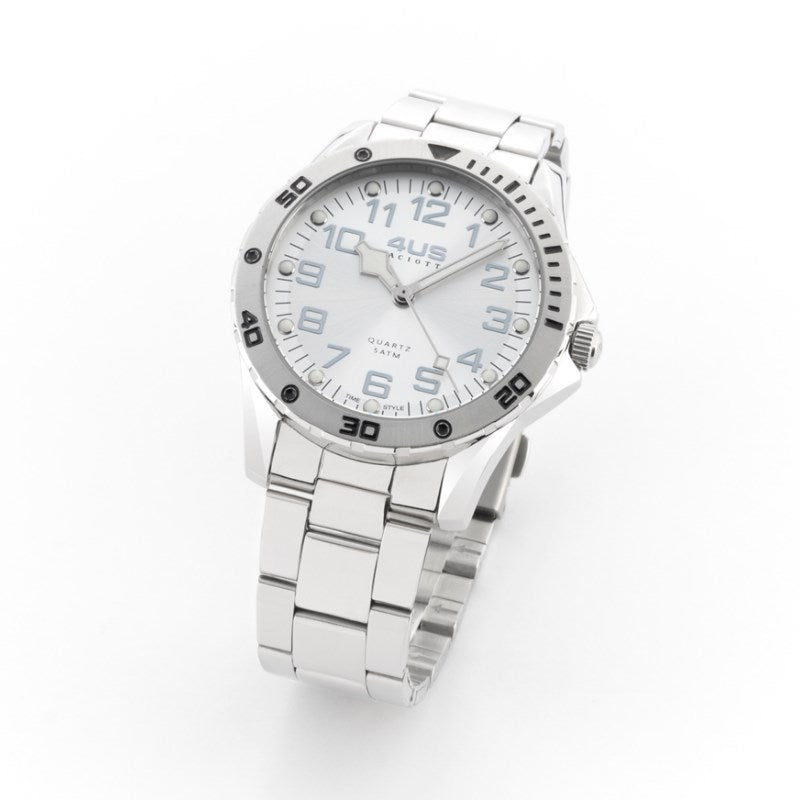 Cesare Paciotti men's watch. Time-only watch with Miyota quartz movement. 5 atm water resistance with luminous indexes. Round-shaped steel case with a diameter of 40 mm. Silver colored dial and steel strap. Closure: deployant.
