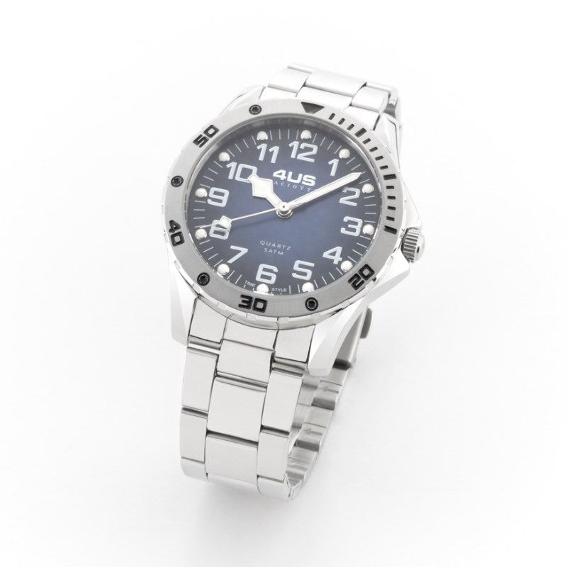 Cesare Paciotti men's watch. Time-only watch with Miyota quartz movement. 5 atm water resistance with luminous indexes. Round-shaped steel case with a diameter of 40 mm. Blue dial and steel strap.