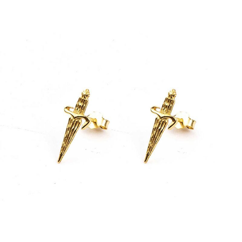 Pendientes de lóbulo con forma del tradicional puñal de la marca texturizado fabricados en plata de color oro amarillo 925.