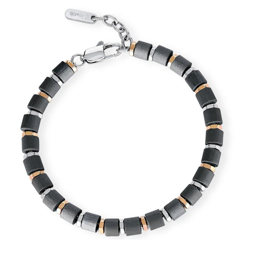 Pulsera para hombre 2Jewels de la colección Black Fiber. Pulsera en acero 316L, PVD oro rosa y fibra de carbono.