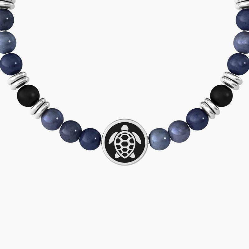 Pulsera de hombre con dumortierita azul, ágata negra y tortuga Kidult 732258