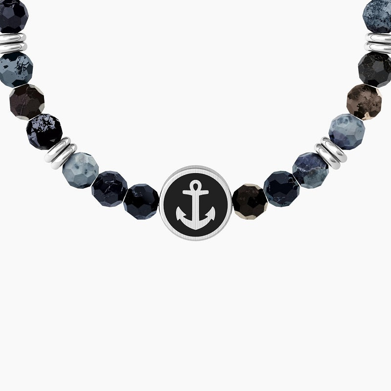 Pulsera elástica de hombre con ágata azul y ancla Family Kidult 732263