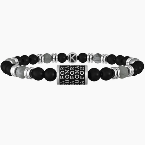 Pulsera elástica para hombre Kidult 732174 con ágata negra y gris