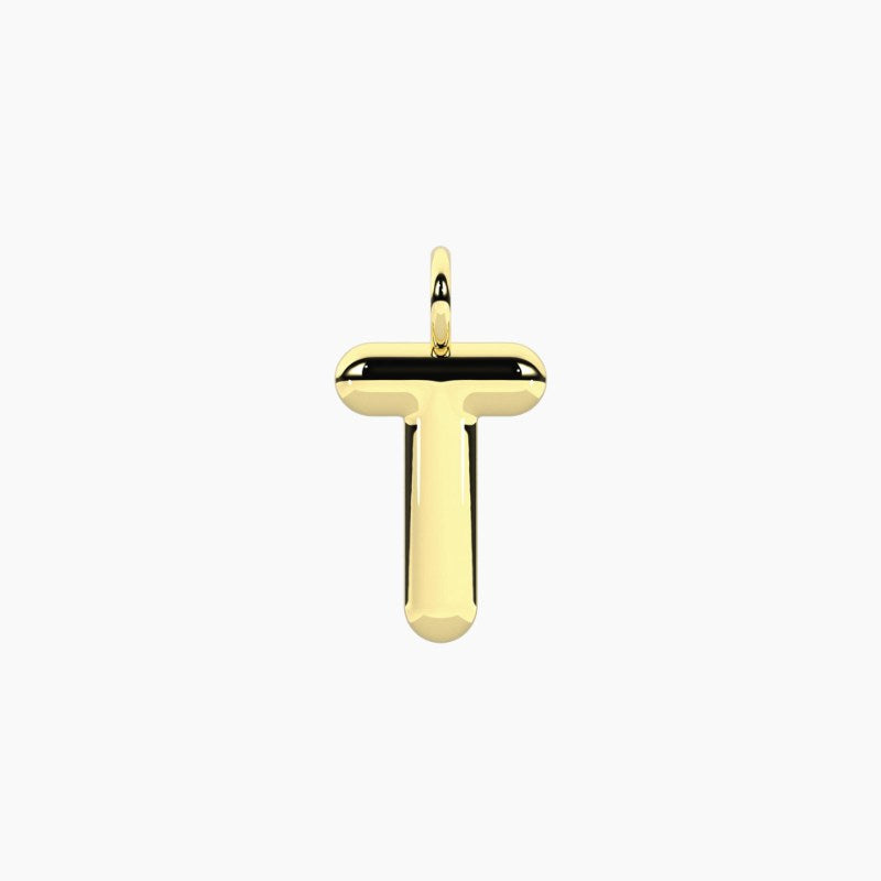 Ciondolo in acciaio dorato a forma di lettera. Collezione Iniziale. Dimensioni ciondolo: 9,8x13,5 mm. Materiale: Acciaio 316L, PVD giallo.