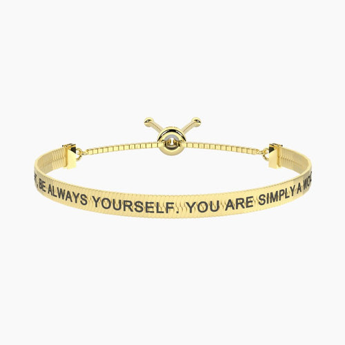 Bracciale da donna in acciaio dorato elastico con frase Kidult 732354